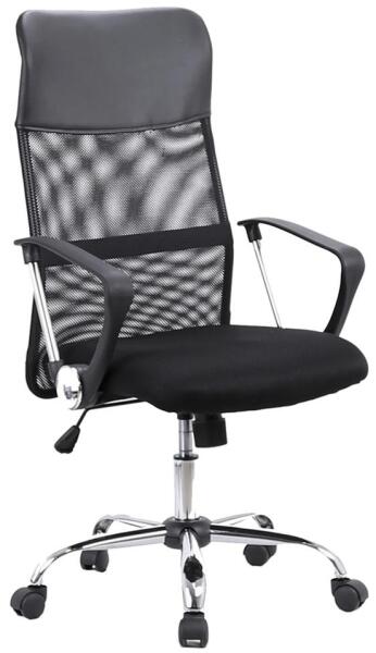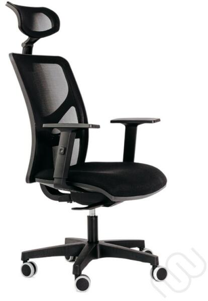 Nagyon népszerű Executive irodai szék dizájnban A modern kor stílusos fekete irodai széke a kiváló minőségű dugattyúnak köszönhetően állítható magasságú, hintamechanikával, megerősített fémkereszttel, krómozott kivitelben és szőnyegre alkalmas műanyag kerekekkel A kényelmes ülés kellemes fekete textil kárpitozású. A légáteresztő, fekete hálóval és fekete sz