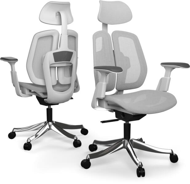 Ergonomikus irodai szék- Állítható magasságú fejtámla - Állítható magasságú deréktámasz - Állítható ülésmagasság: 43-54 cm - Állítható ülésmélység: 46-50 cm - Állítható magasságú, puha támfelületű, 3D karfák - Ergonómiát és jó szellőzést biztosító, hálós háttámla - Medencét jól alátámasztó, kárpitozott ülőfelület - Szinkronmechanika: A test