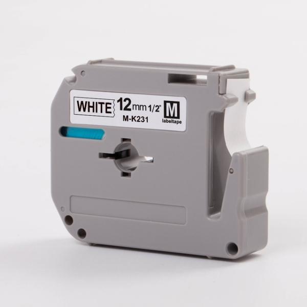 Brother 12mm utángyártott szalag fehér alap, fekete betű, 12m hosszú Fekete, 1.2 cm, Brother M-type, Fehér, Fehéren fekete