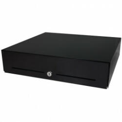 cash drawer, front opening, 446x410x109mm, insert: 5 note compartments, 8 coin compartments, removable, 1 receipt compartment, 2 receipt slots, underdesk mountable, cylinder lock, 3-pos. lock, incl. : cable (USB), grey