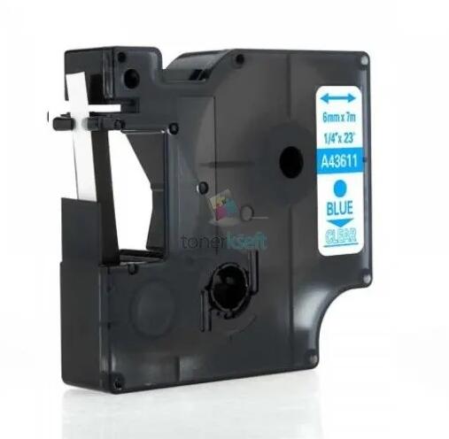 Dymo 43611 D1 - szalag 6mm x 7m kék nyomtatott / átlátszó szubsztrát, laminált kompatibilis