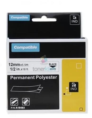 Dymo 18483 Rhino (S0718210) - szalag 12mm x 5,5m fekete nyomtatott / fehér szubsztrát, polyesterové kompatibilis