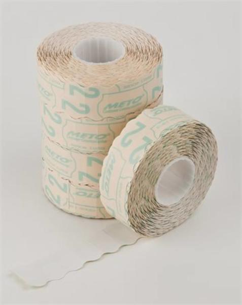 Árazógépszalag, 22x12 mm, METO, fehér (ISM22) egy soros árazócímke hullámos 1500 db/ tekercs Kompatibilis gép: Blitz P6, Jolly JP6, Swing 622, Open P6, Meto 622, Printex Z6, Tovel L6