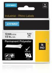 Feliratozógép szalag, tartós poliészter, 12 mm x 5,5 m, DYMO Rhino, fehér-fekete (GD718210) DYMO Rhino gépekkel használható tartós poliészter: használható különbféle sima, mintázott vagy erősen mintázott felületekre; kitűnően ellenáll oldó- és vegyszereknek alkalmazási felület: sima, lapos, mintázott, porbevonatú ellenállás: hő, víz, UV-sugárzás, vegyszerek, olajo