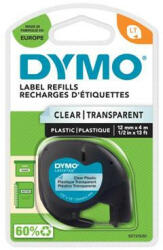 Feliratozógép szalag, 12 mm x 4 m, DYMO "Letratag", víztiszta Készítsen jól olvasható címkéket, melyek könnyen tapadnak például papíron, üveg és műanyag felületeken. -cseppálló, hosszantartó, kizárólag beltéri használatra -ragasztóanyaggal ellátott hátoldal, öntapadó -a kazetták külső része 100%-ban újrahasznosított anyagból -nincs szükség tintára vagy festé