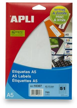 Etikett, 45x8 mm, eltávolítható, ékszerekhez, A5 hordozón, APLI, 765 etikett/csomag - LCA10307 - Ár- és ékszer címkék - APLI címke ékszerekhez a tökéletes megjelenésért! - eltávolítható fehér etikett, kerekített sarokkal kifejezetten ékszerekhez - A5 hord