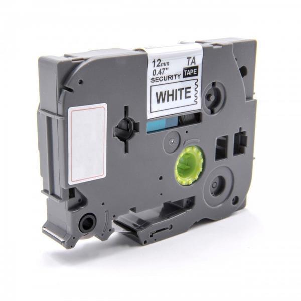 Brother TZE-SE3 12mm utángyártott biztonsági szalag fehér alap, fekete betű, 8m hosszú Fekete, 1.2 cm, Brother TZE szalag, Fehér