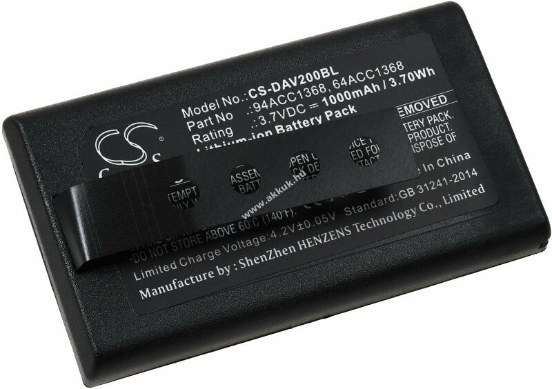 Feszültség: 3,7V - Teljesítmény: 1000mAh/3,7Wh - Típus: Li-Ion - Méret: 65mm x 37mm x 7mm