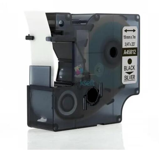 Dymo 45812 D1 - szalag 19mm x 7m fekete nyomtatott / ezüst szubsztrát, laminált kompatibilis