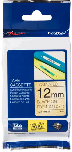 12 mm széles, 8 m hosszú, arany alapon fekete betűs címkeszalag tartós feliratok nyomtatásához. Serlegüzletek figyelmébe ajánljuk! 12 mm széles, 8 m hosszú, arany alapon fekete betűs címkeszalag tartós feliratok nyomtatásához. Serlegüzletek figyelmébe ajánljuk! Az következő szalagnyomtatókhoz: (A nyomtatókon szereplő szám utáni betűkód nem változtat a kompatibilitáso