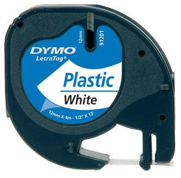 Feliratozó szalag DYMO LetraTag 59422 12mm x 4m műanyag fehér alapon fekete írásszín Beltéri használatra, tartós, a betű minden esetben fekete. Méret: 12 mm x 4 m