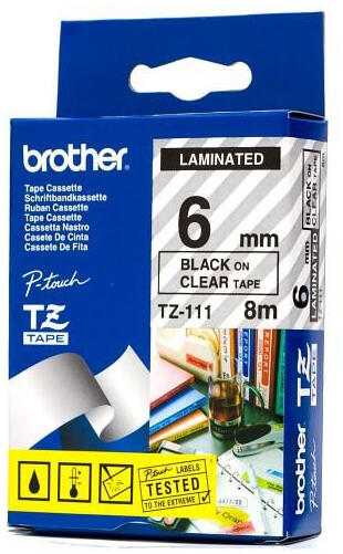 Brother TZE-111 laminált P-touch szalag (6mm) Black on Clear - 8m