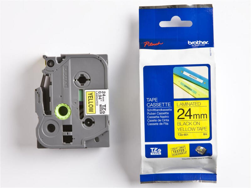 Brother TZE-651 laminált P-touch szalag (24mm) Black on Yellow - 8m
