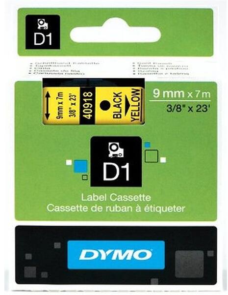 Típus:Feliratozógép szalag, Szín:Sárga, Kompatibilitás:Feliratozógép, címkézőgép, Egyéb szín:Fekete, Egyéb tulajdonság:UV ellenállás, Vízálló, Szalaghossz:7, Szalagszélesség:9, Szalagtípus:D1,
