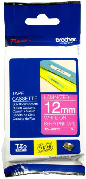 12 mm széles, 5 m hosszú, rózsaszín (Berry Pink) alapon fehér betűs matt címkeszalag tartós, laminált feliratok nyomtatásához. 12 mm széles, 5 m hosszú, rózsaszín (Berry Pink) alapon fehér betűs matt címkeszalag tartós, laminált feliratok nyomtatásához. Az következő szalagnyomtatókhoz: (A nyomtatókon szereplő szám utáni betűkód nem változtat a kompatibilitások, hag