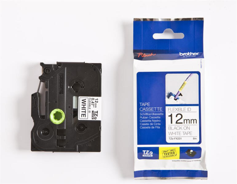 Brother TZE-FX231 laminált P-touch flexibilis szalag (12mm) Black on White - 8m