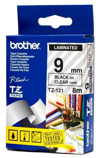 Brother TZE-121 laminált P-touch szalag (9mm) Black on Clear - 8m