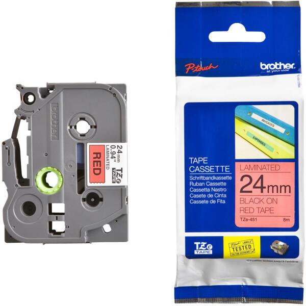 Brother TZE-451 laminált P-touch szalag (24mm) Black on Red - 8m