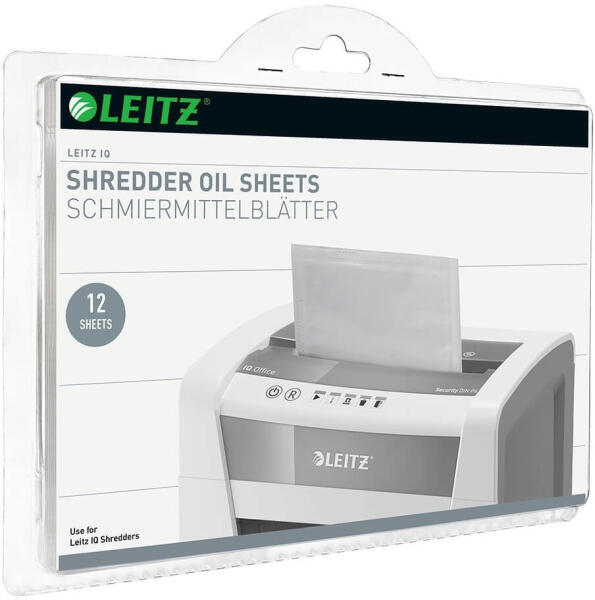 OLAJOZÓLAP IRATMEGSEMMISÍTŐHÖZ, 12 LAP/CSOMAG, LEITZ A vágóél olajozásával növeli az iratmegsemmisítő teljesítményét. Kompatibilis minden márkájú iratmegsemmisítővel. Használata javasolt minden harmadik hulladékgyűjtő ürítés alkalmával. Katalóguskód: 53619