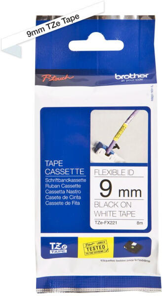 Brother TZE-FX221 laminált P-touch szalag (9mm) Black on White - 8m