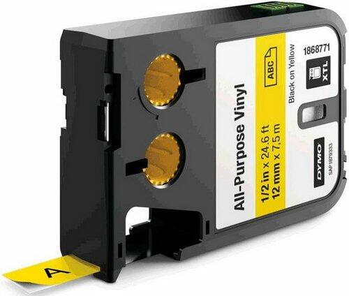 Sárga színű szalag Fekete színű felirattal 12 mm széles 7 m hosszú Anyaga: Vinyl Normál tapadás