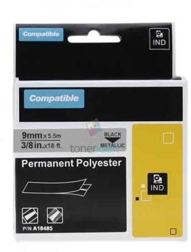Dymo 18485 Rhino (S0718170) - szalag 9mm x 5,5m fekete nyomtatott / fémes szubsztrát, polyesterové kompatibilis