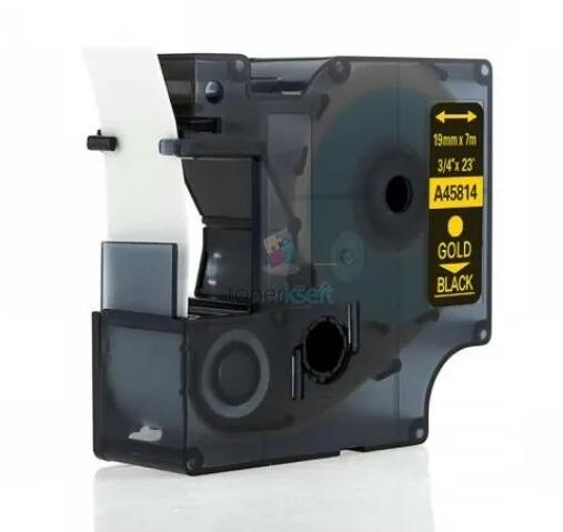 Dymo 45814 D1 - szalag 19mm x 7m arany nyomtatott / fekete szubsztrát, laminált kompatibilis