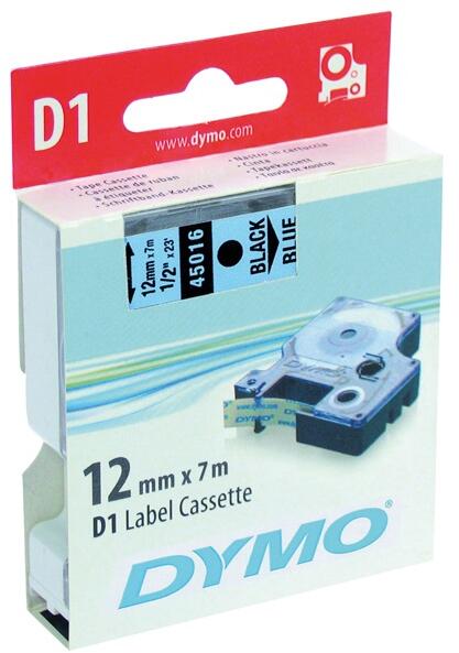 Szélesség (mm):12, Anyag:Műanyag, Betűszín:fekete, Háttérszín:kék, Szalag típusa:D1,