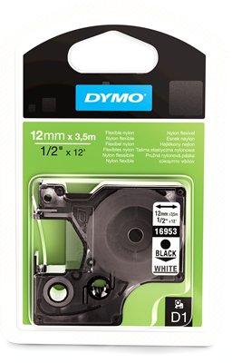 flexibilis nejlon címkék tartós ragasztóanyagot tartalmaznak és tökéletesen megfelelnek az ívelt vagy mintázott felületek címkézéséhez, kábelek zászlós jelöléséhez, illetve bármely nem sima vagy nem lapos felületek címkézéséhez a szalagok a DYMO LM gépekkel használhatóak a kazetta megjelölésénél először a szalag színe, majd a betű színe van feltüntetve