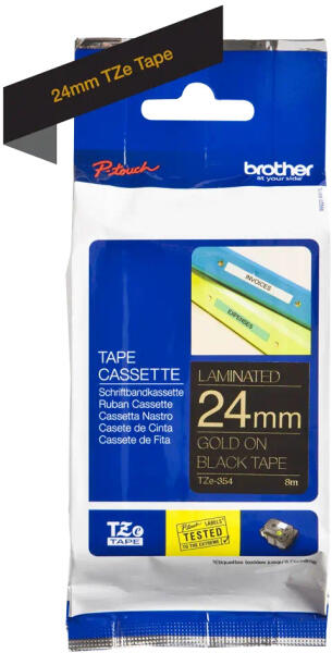 24 mm széles, 8 m hosszú, fekete alapon arany betűs, öntapadós címkeszalag laminált tartós feliratok nyomtatásához. 24 mm széles, 8 m hosszú, fekete alapon arany betűs, öntapadós címkeszalag laminált tartós feliratok nyomtatásához. Az következő szalagnyomtatókhoz: (A nyomtatókon szereplő szám utáni betűkód nem változtat a kompatibilitások, hagyd figyelmen kívül!) B