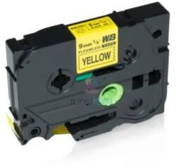 Brother TZe-FX621 / TZeFX621 - szalag 9mm x 8m fekete nyomtatás/sárga szubsztrát, laminált rugalmas kompatibilis