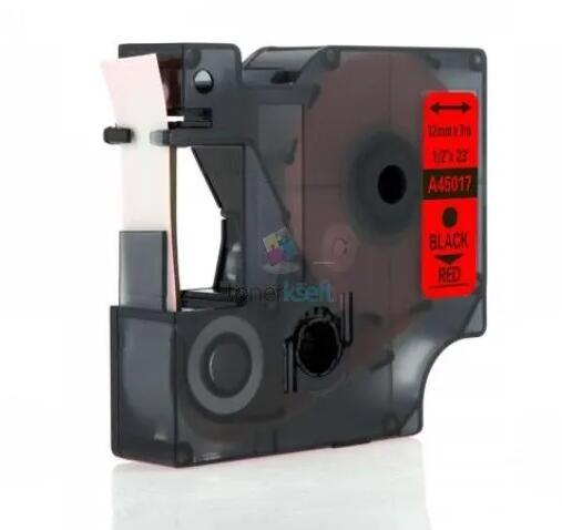 Dymo 45017 D1 (S0720570) - szalag 12mm x 7m fekete nyomtatott / piros szubsztrát, laminált kompatibilis