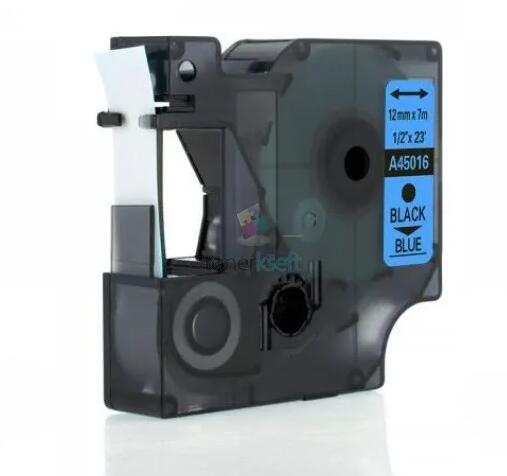 Dymo 45016 D1 (S0720560) - szalag 12mm x 7m fekete nyomtatott / kék szubsztrát, laminált kompatibilis