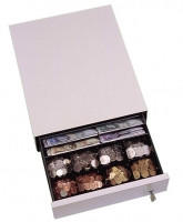 cash drawer, front opening, 356x111x425mm, 6 note compartments, 8 coin compartments, 3-pos. lock, different locking, 75 series, colour: white