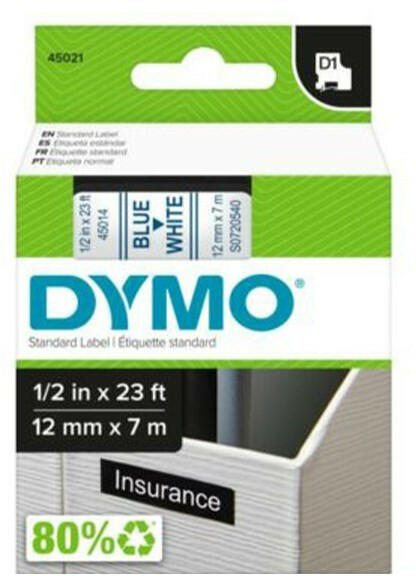 Feliratozó szalag DYMO D1 45014 12mm x 7m fehér alapon kék írásszín D1 kazetta a DYMO fejlesztésének köszönhetően minden feliratozási igénynek megfelel irodai környezetben, műhelyben vagy kiskereskedelmi egységekben.