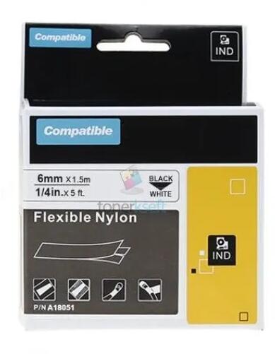 Dymo 18051 Rhino (S0718260) - szalag 6mm x 1,5m fekete nyomtatott / fehér szubsztrát, zsugorcső kompatibilis