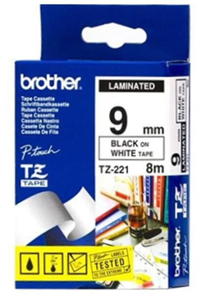 - 9 mm széles. - 8 m hosszú. - Fehér alapon fekete betűs. - öntapadós címkeszalag laminált tartós feliratok nyomtatásához.