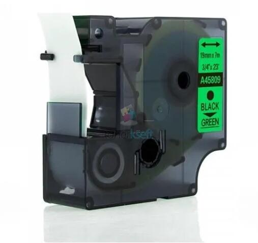 Dymo 45809 D1 (S0720890) - szalag 19mm x 7m fekete nyomtatott / zöld szubsztrát, laminált kompatibilis