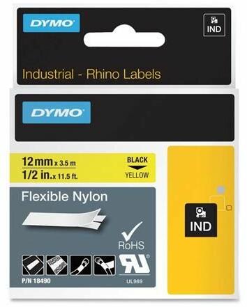 DYMO Rhino gépekkel használható rugalmas nylon: kifejezetten vezetékek és káblek jelölésére alkalmazási felület: sima, lapos, mintázott, porbevonatú, ívelt, kábelek és vezetékek ellenállás: hõ, UV-sugárzás, hõmérséklet: -18°C - + 120°C beltéren alkalmazható a kazetta megjelölésénél elõször a szalag színe, majd a betű színe van feltüntetveCsomagolási egység: