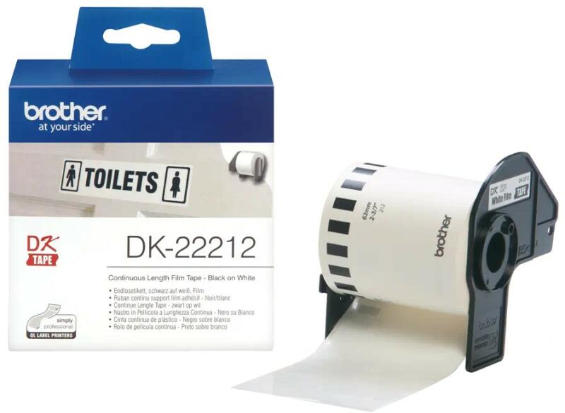 Brother DK-22212 fehér alapon fekete, folytonos film szalag, tekercsben– 62mm. A szalag hossza 15.24m.