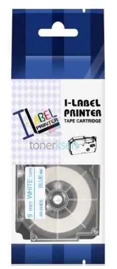 Casio XR-9WE B - szalag 9mm x 8m kék nyomtatott / fehér szubsztrát, laminált kompatibilis