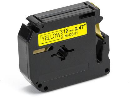 Brother 12mm utángyártott szalag sárga alap, fekete betű, 12m hosszú Fekete, Sárga, 1.2 cm, Brother M-type, Sárgán fekete