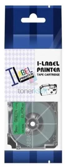 Casio XR-9GN 1 - szalag 9mm x 8m fekete nyomtatott / zöld szubsztrát, laminált kompatibilis