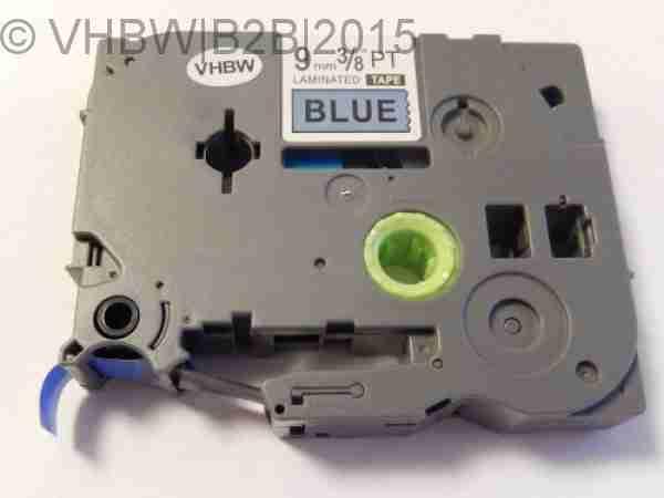 Brother 9mm utángyártott szalag kék alap, fekete betű, 9m hosszú Fekete, Kék, 9 mm, Brother TZE szalag