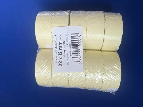 A Árazószalag, 22x12 mm, „A, fehér (IS22FA) címkék árazógépekhez kiszerelés: 10 db/csomag sárgás színű hordozó 1200 címke/tekercs Kompatibilis gép: Blitz P6, Jolly JP6, Swing 622, Open P6, Meto 622, Printex Z6, Tovel L6-hez készült, kiváló minőségű nyomtatási megoldást kínál. Tökéletes választás azok számára, akik megbízható teljesítményre vágynak. címkék