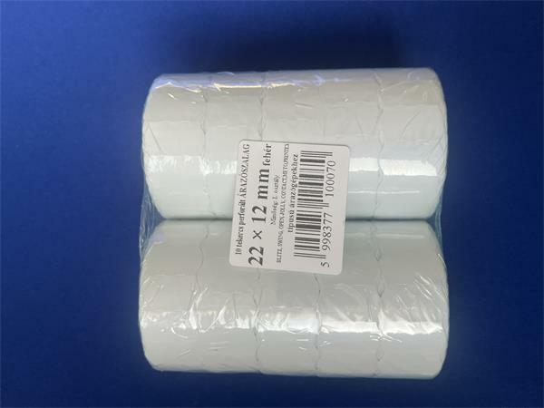 Címkék árazógépekhez -kiszerelés: 10 db/csomag -fehéres színű hordozó -1200 címke/tekercs -kompatibilis gép: Blitz P6, Jolly JP6, Swing 622, Open P6, Meto 622, Printex Z6, Tovel L6