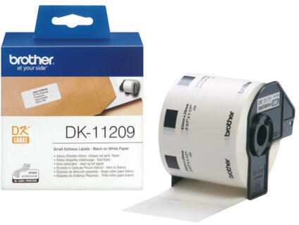 **DK-11209 elővágott öntapadós etikett címke tekercsben. ** * Alapanyag: papír -Szín: fehér * Felirat: fekete * Címke mérete: 29 x 62 mm * 800 címke/tekercs - Brother DK Label etikett öntapadós címke - Szín : fehér alapon fekete - Anyaga : papír - Etikett mérete: 62 mm X 29 mm - 1 tekercs 800 db etikettet tartalmaz Kompatibilis címkenyomtatók: Brother QL-570Brother QL-650TDBrot