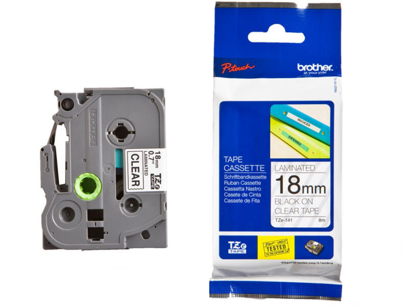 Brother TZE-141 laminált P-touch szalag (18mm) Black on Transparent - 8m