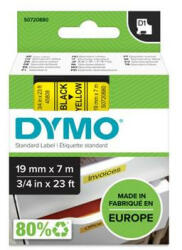 Feliratozógép szalag, 19 mm x 7 m, DYMO "D1", sárga-fekete Az eredeti DYMO D1 címkék tökéletesek minden otthoni és irodai címkézési feladathoz. -D1 szabványos címke: eltávolítható, többféle felületre tapad, a hátoldala könnyen lefejthető -a kazetták külső része 100%-ban újrahasznosított anyagból -nincs szükség tintára vagy festékpatronra -vízálló -UV-álló -mí