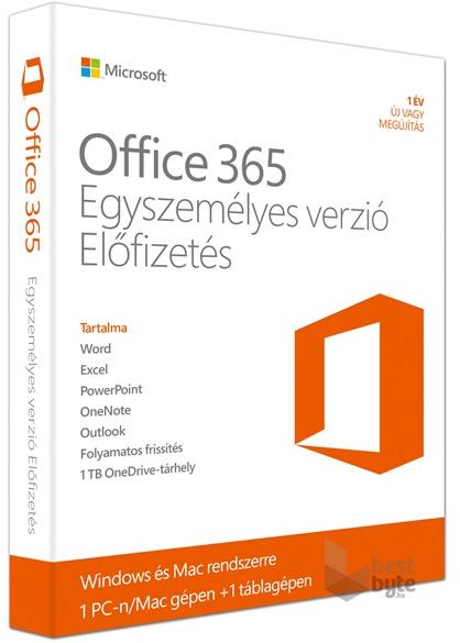 Gyártó: Microsoft Modell: Office 365 Personal 32/64bit HUN (1 User/1 Year) QQ2-00070 Leírás: Office az Ön számára, otthoni vagy útközbeni használatra Az Office 365 Egyszemélyes verzió egy előfizetéses szolgáltatás, amelynek birtokában Ön bármelyik eszközén, akár útközben is elvégezheti feladatait. A Windows 7 vagy újabb verzióval kompatibilis Mac Office 2016-hoz a Mac OS